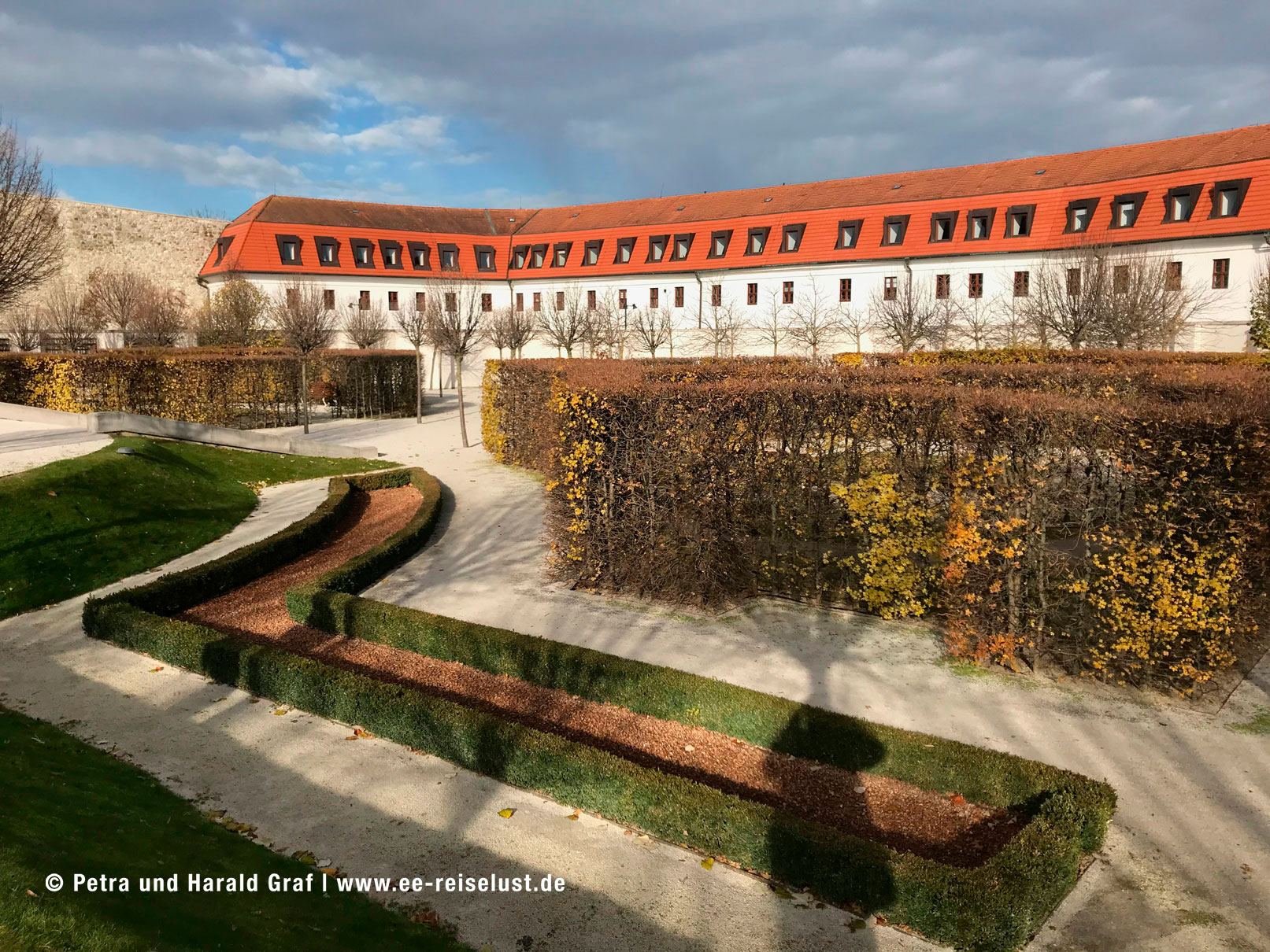 Über uns ein strahlender blauer Himmel. Wir umrundeten die Burg, in der sich das historische Museum befindet, erkundeten den Barockgarten, der im Sommer bestimmt wunderschön ist. Langsam mussten wir uns leider auf den Rückweg machen.